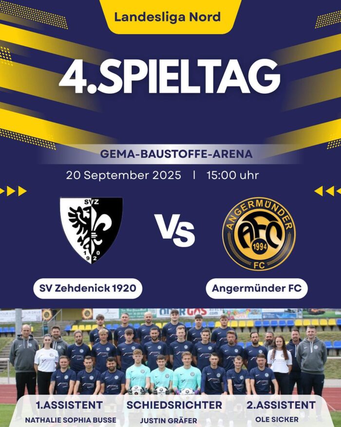 Am Samstag um 15:00 Uhr gastiert unsere Erste beim SV Zehdenick in der GEMA-Baustoffe-Arena. Die Bilanz der letzten Pflichtspiele spricht für uns – 4 Siege, 1 Unentschieden. Doch nach den jüngsten Niederlagen geht der Brandenburgliga-Absteiger als Favorit in die Partie.