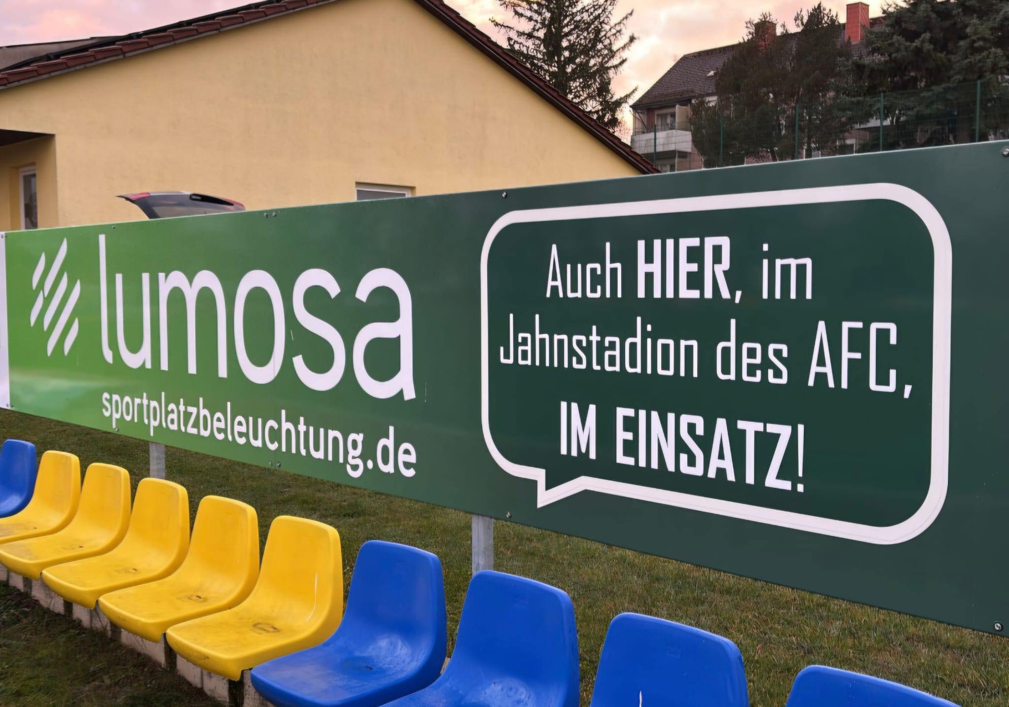 Dank euch erstrahlt unser Sportplatz im Jahnstadion immer in bestem Licht. Ob Training oder Spieltag – eure perfekte Ausleuchtung sorgt dafür, dass unsere Teams immer optimale Bedingungen haben. Wir freuen uns, euch als starken Partner an unserer Seite zu wissen!